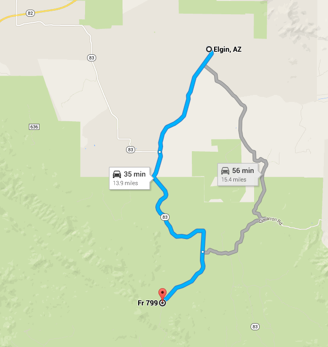 more detailed map starting from Elgin, AZ
