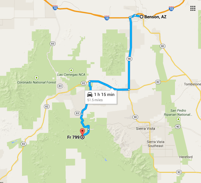 It takes about 75 minutes to get to AZ Trail Canelo Hills trailhead from Benson, AZ.
