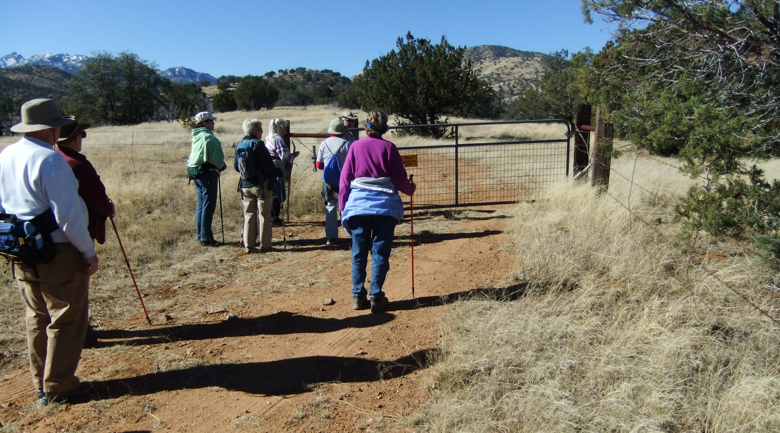 The hike described here requires passing through two gates (gate 1, gate 2) that must be closed