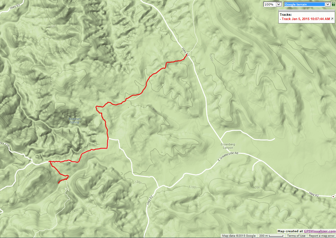 Google Terrain View of the Hike
