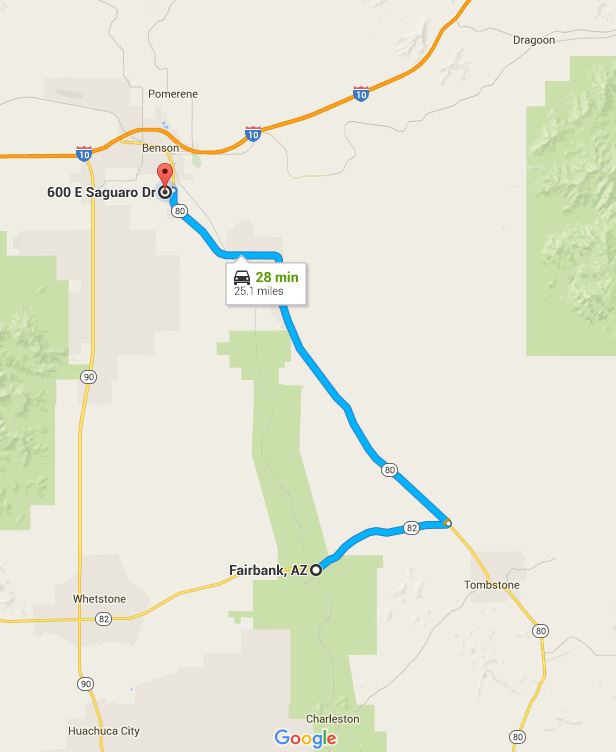 From Benson, drive south on AZ 80